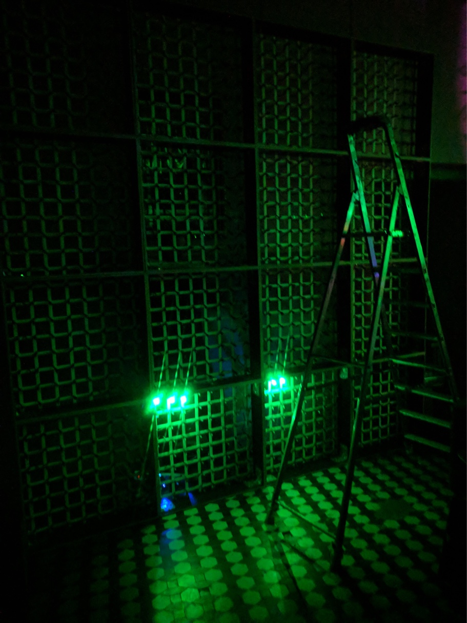 Over 1024 coffee cups / balloons are enlighted by 1024 LEDs. The controlling of the 16 Arduino microprocessors will be controlled by the DMX/ArtNet protocoll.